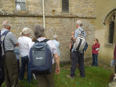 Thanks to Lesley Dunlop from the Oxfordshire Geology Trust we learnt more about the reasons for the shape of the land beneath our feet and where some of the materials in our local buildings came from. Starting from the Harcourt Arms (and ending there for a welcome drink) we visited St Michael C of E church to see the building stones made mainly from oolitic Jurassic limestone and also some made from gravel conglomerate which we were to see again in the stones of the Devil's Quoits. We could also see some fine examples of Stonesfield Slate roofing tiles.